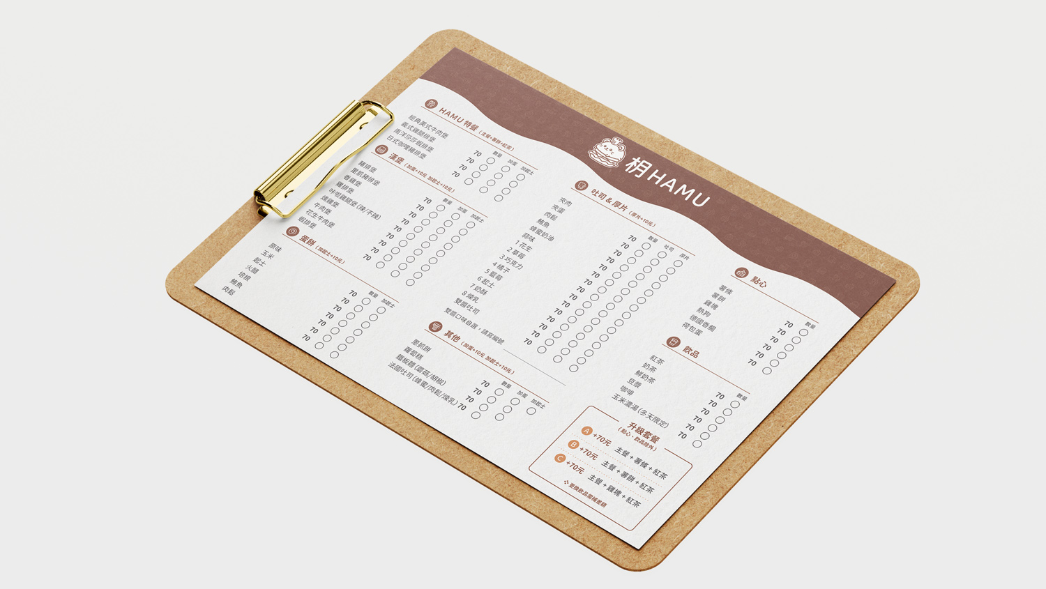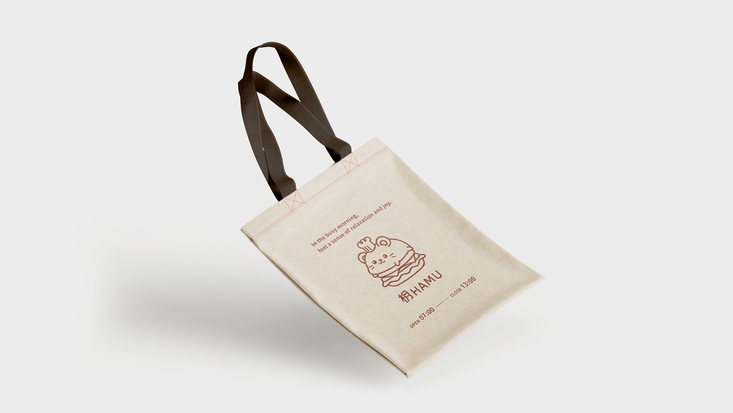 品牌形象以輕鬆愉快的早餐體驗為核心,讓顧客即便在忙碌的早晨,也能感受到片刻的輕鬆愉悅。整體標誌以「漢堡」為基礎,簡單直接,能迅速讓顧客聯想到我們提供的餐點。一隻慵懶的倉鼠趴在漢堡上,展現輕鬆與活力,配合廚師帽象徵著我們對餐點品質的專業承諾,傳達出用心製作每一份早餐的態度。